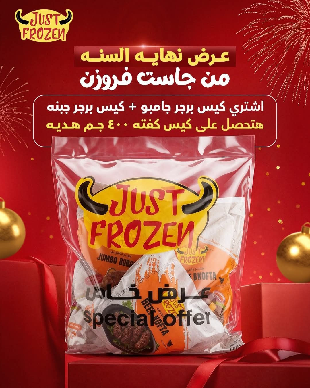 عرض جاست آخر السنة (برجر جامبوـبرجر جبنةـكيس كفتة 400جم هدية)